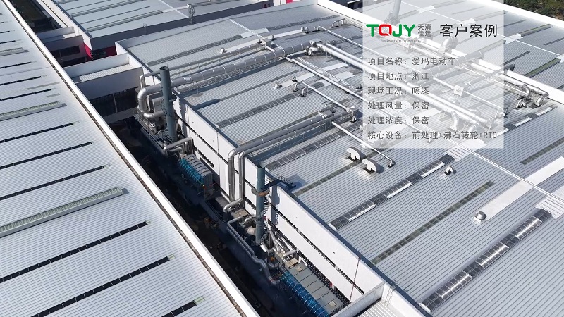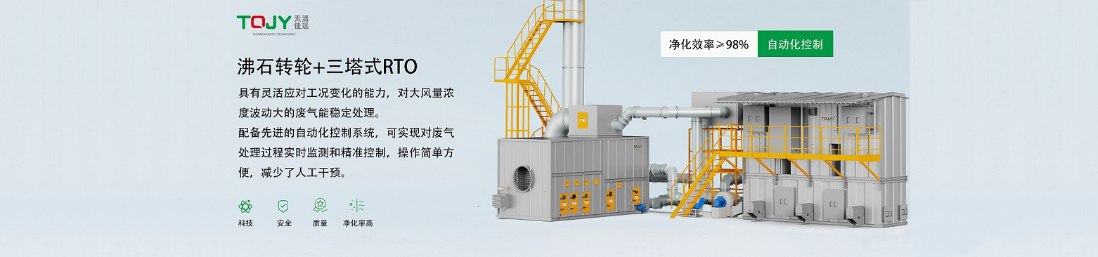 本技术是沸石转轮吸附同蓄热式焚烧技术的组合工艺,净化系统主要由多级过滤装置、沸石转轮浓缩吸附装置、RT0、风机、换热器、PLC自动化控制系统组成。该组合技术通过沸石转轮的吸附浓缩使大风量、低浓度有机废气浓缩为小风量、高浓度浓缩气体,高浓度浓缩气再经RTO高温燃烧分解为(CO2和H2O等无机成分。